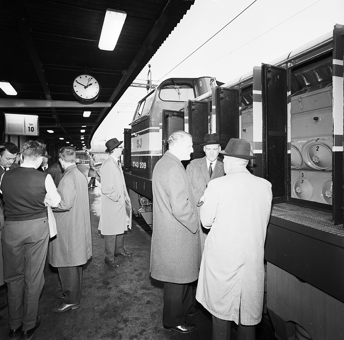Statens Järnvägar SJ DisellokT43 209.Inspektion i samband med leverans. Generaldirektör, Gd, Erik Upmark, 3:a från höger.