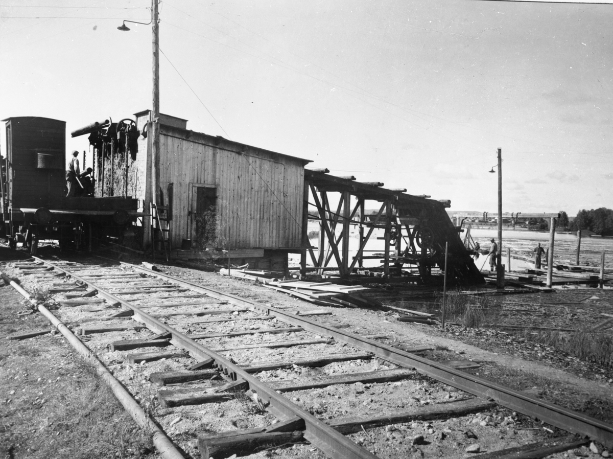 Titel: Lastplats med Timmeruppfordringsverk vid sjön Runn.