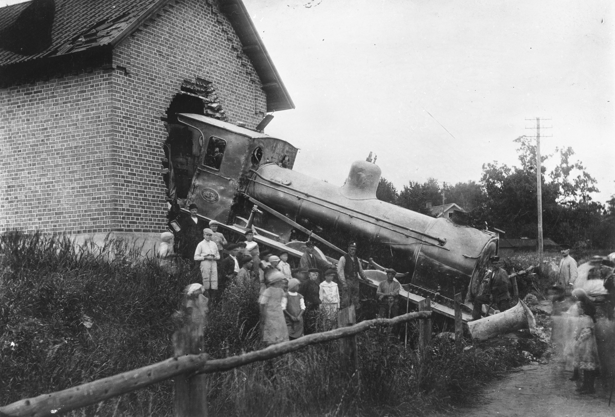 Titel: SWB lok 47 på väg ut genom lokstallsvägen
