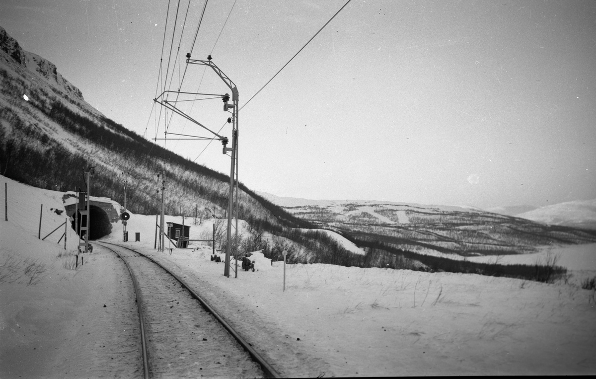 Titel: Linjebild. Vinterbild. Nuoljatunnen sedd från Abiskohållet.