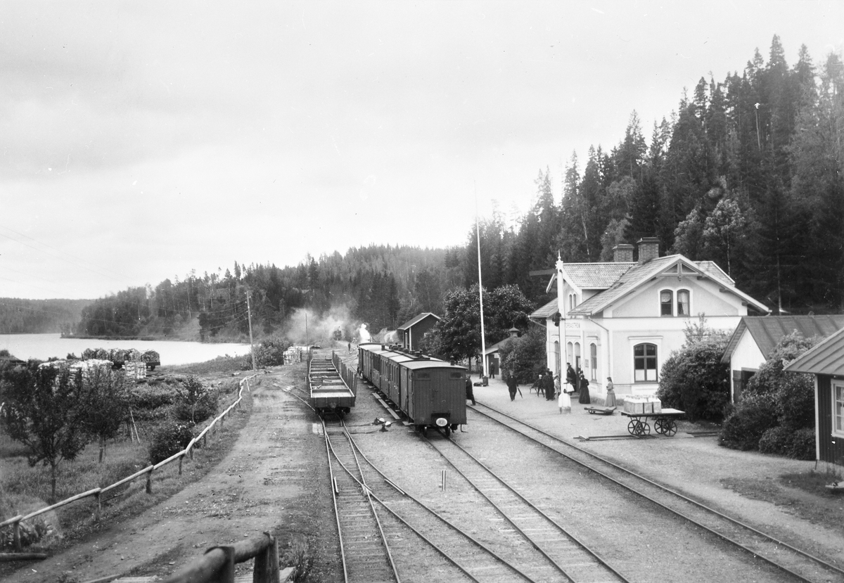 Titel: Trafikplats anlagd 1879. En- och enhalvvånings putsat stationshus.