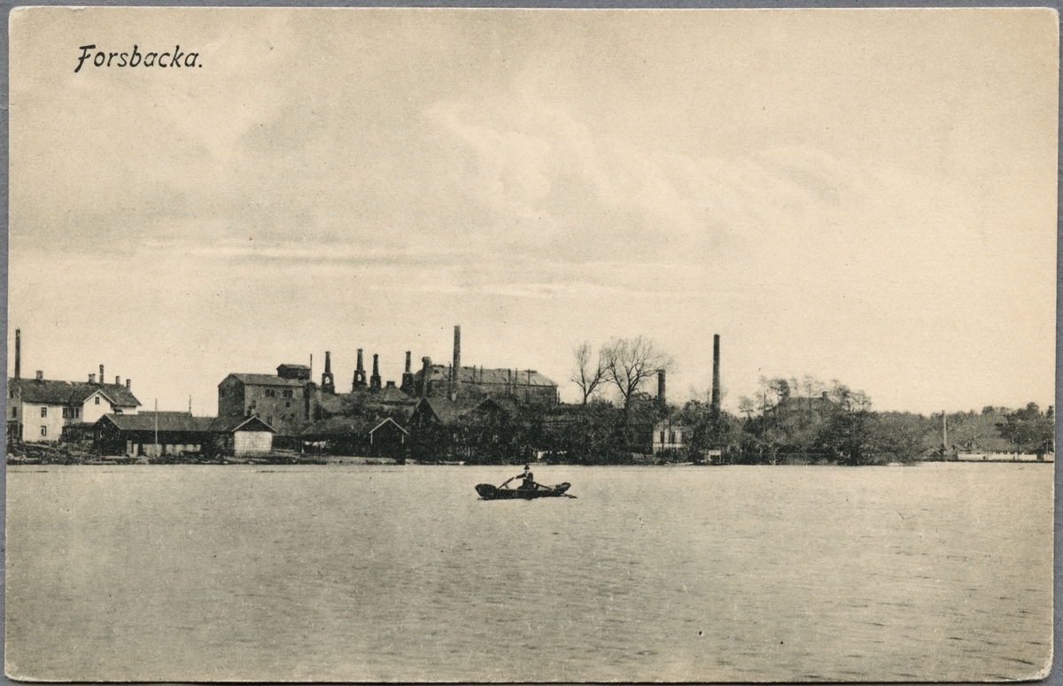Bild tagen över Forsbacka Järnvärk sett från stranden mitt emot.
