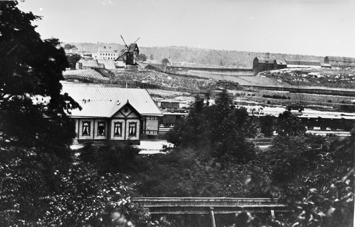 Titel: Utsikt. Kvarnen "Fatburan" i bakgrunden. Stockholm Södra station mitt i bild.