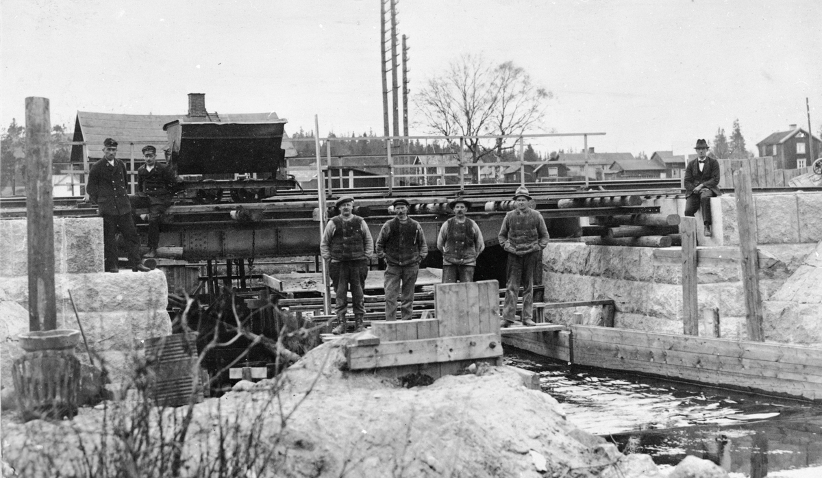 Titel: Arbete med bro över ån.