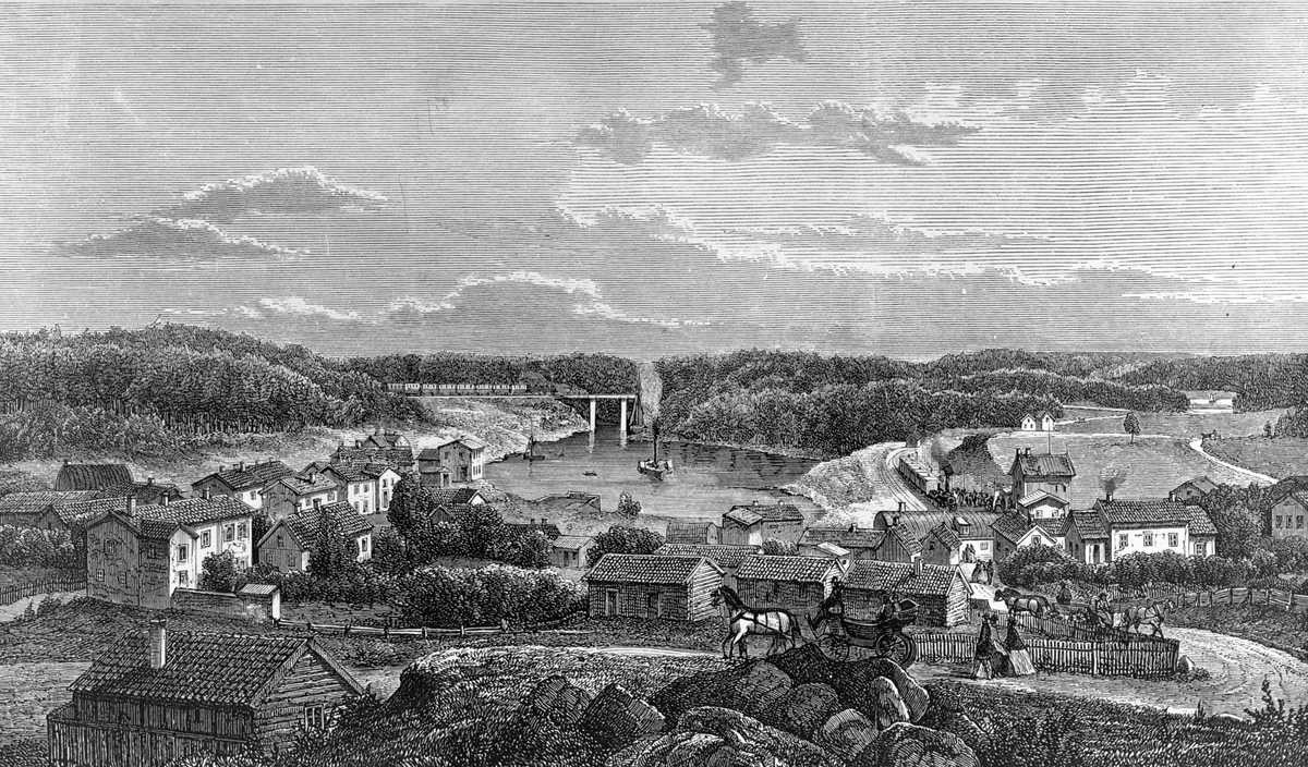 Titel: Vy över staden Med Södertelje nedre till höger.