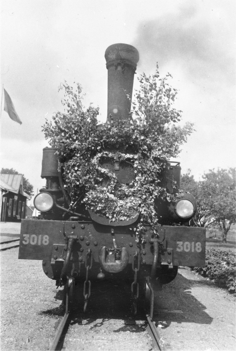 Statens Järnvägar, SJ L5p 3018. Blomstersmyckat en midsommardag.