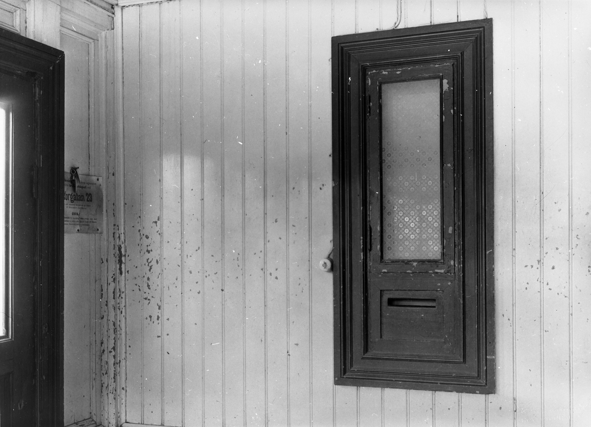 Titel: KHJ, Köping-Hult Järnvägs lucka på Storgatan 30.