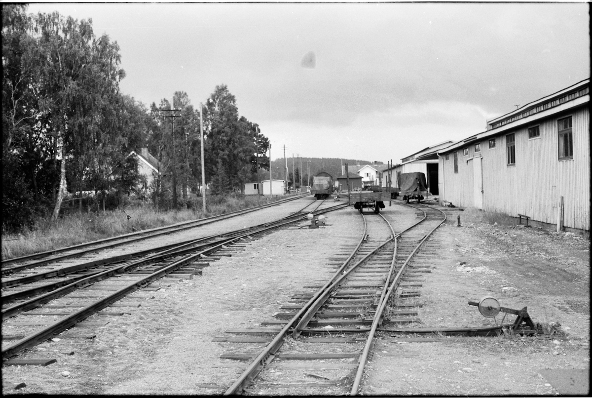 Titel: Bangård och godsmagasin vid Myresjö station.
