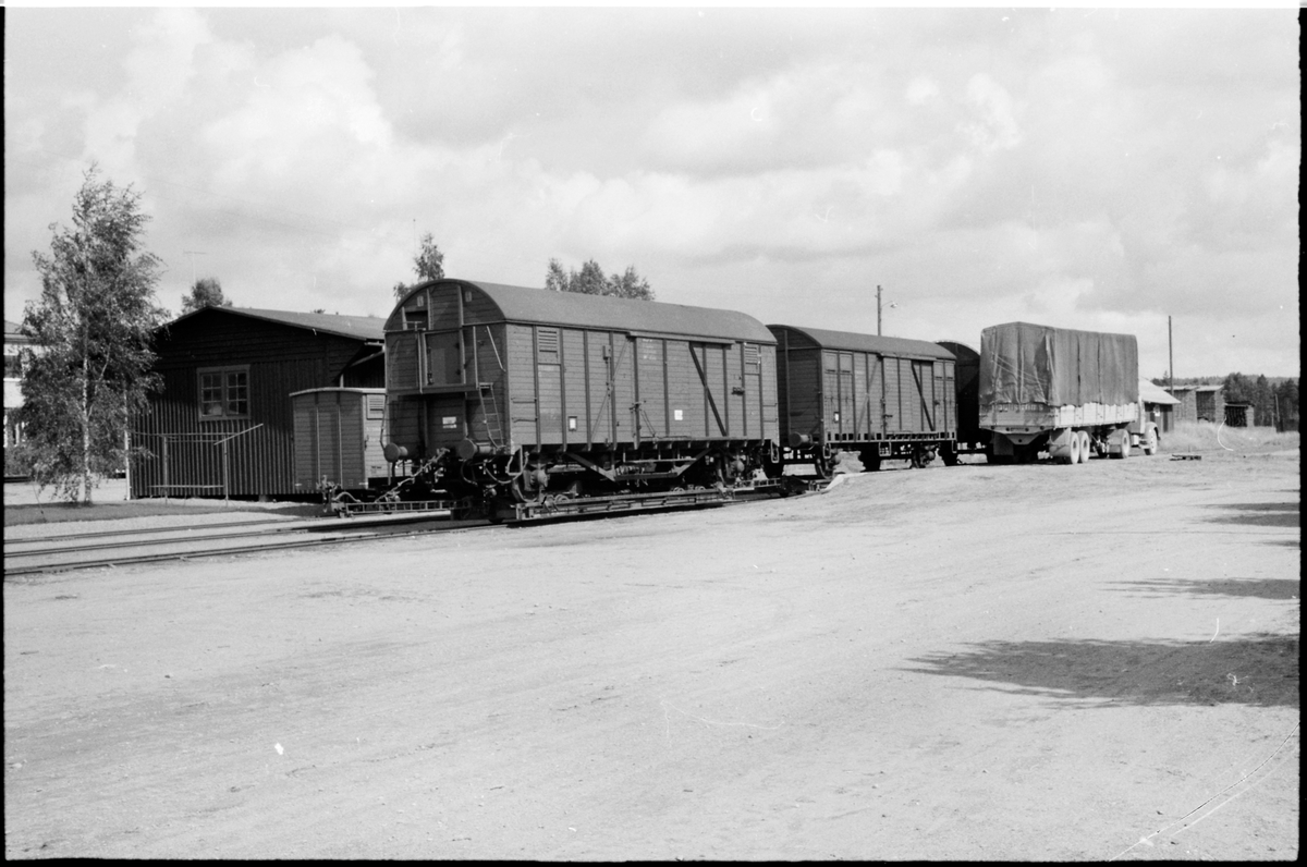 Titel: Godsvagnar på överföringsvagnar vid Järnforsen station.