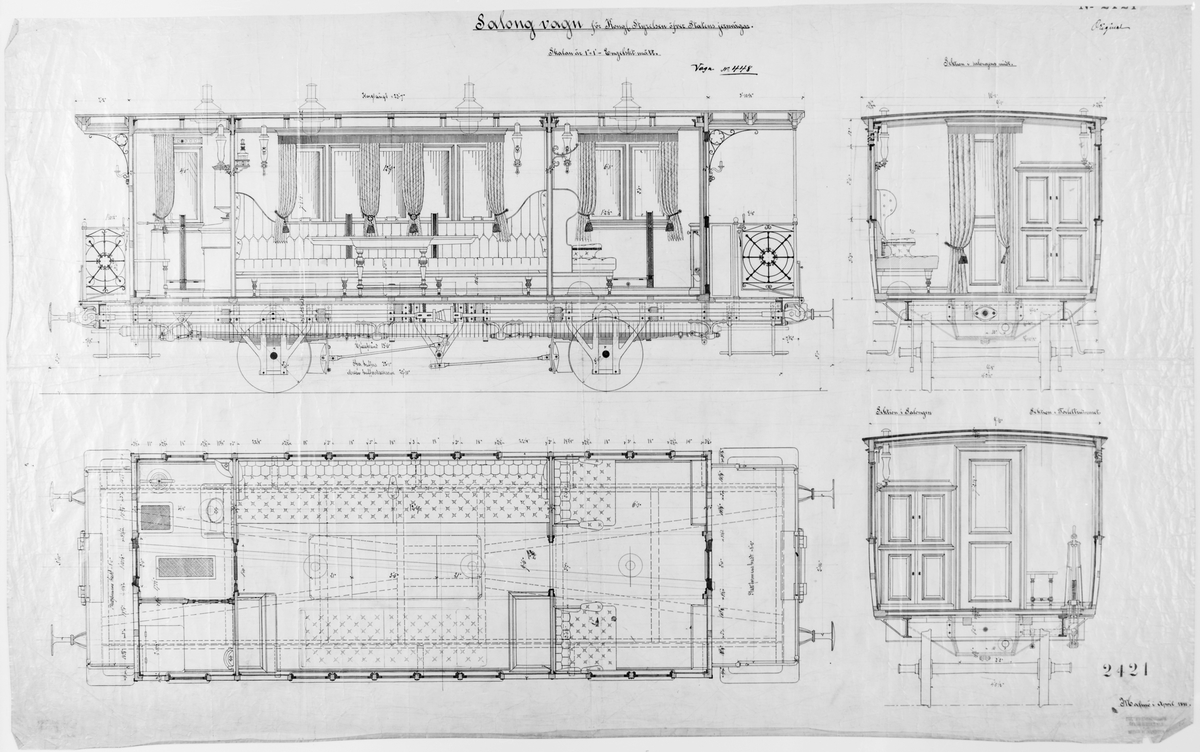 Ritining över Salongsvagnen 448 vid Statens Järnägar, SJ.