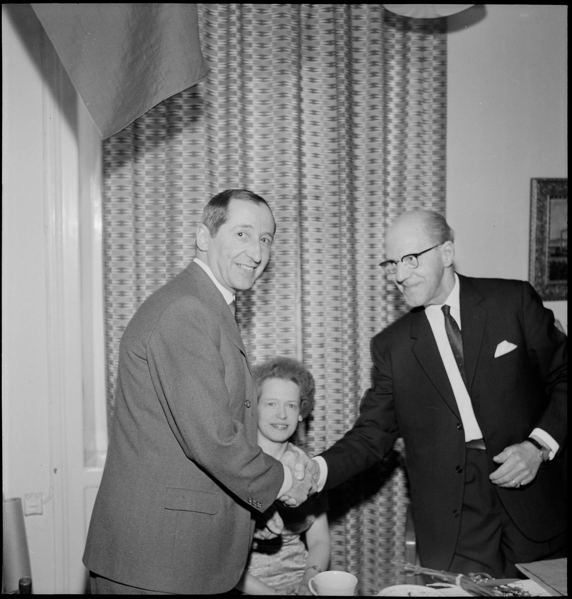 Titel: Bernhard Hjelm vid järnvägsmuseet avtackas.