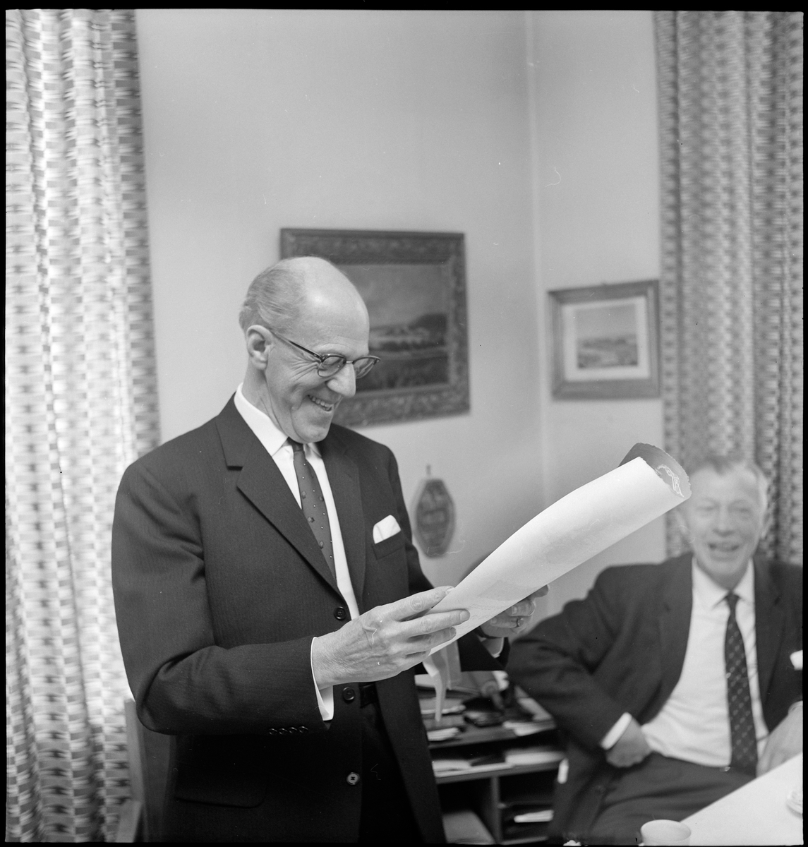 Titel: Bernhard Hjelm vid järnvägsmuseet avtackas.