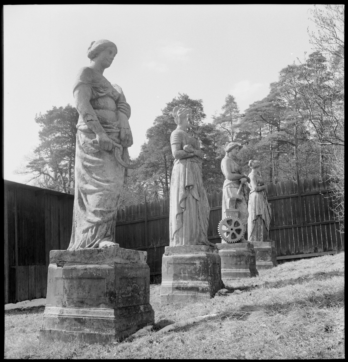 De fyra, nedtagna, statyerna från Stockholm Centralstation.