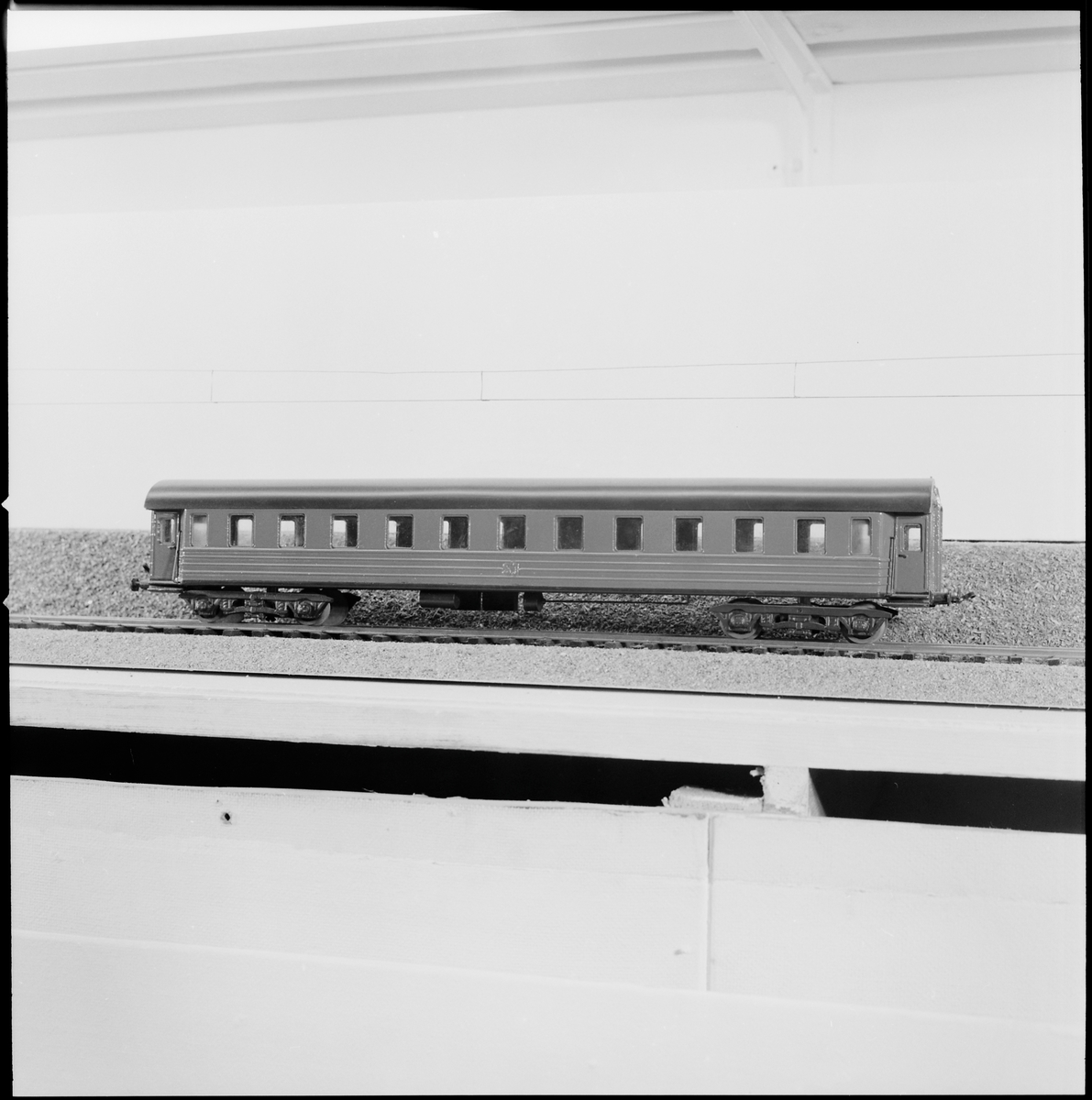 Modell av personvagn littera Bo8, skala 1:50.