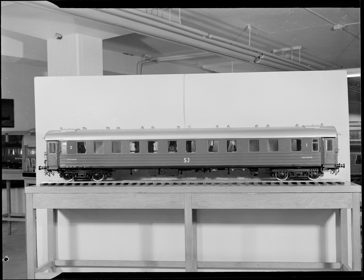 Titel: Modell av sovvagn. Statens Järnvägar SJ WLABo4 3803.