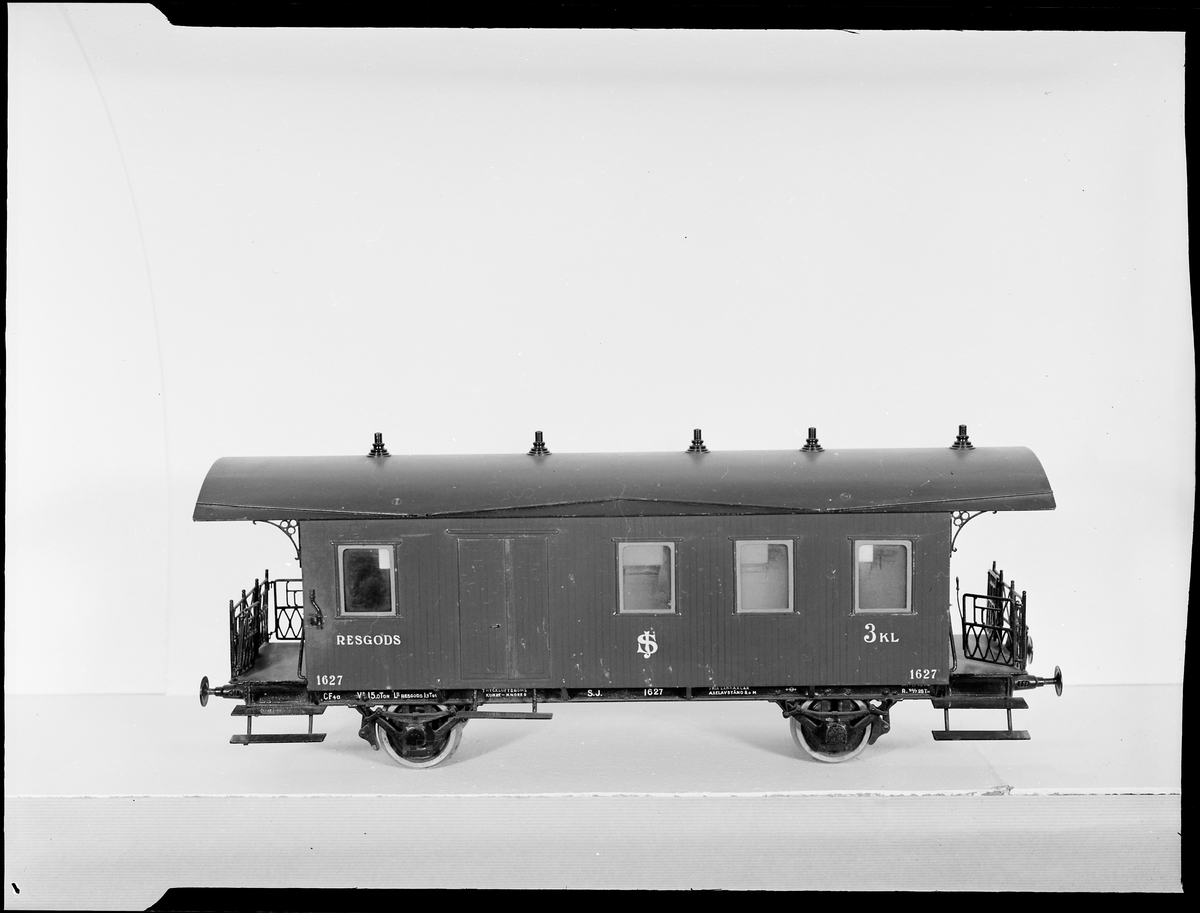 Modell av en kombinerad person och resgodasvagn. Statens Järnvägar, SJ CF4a 1627.