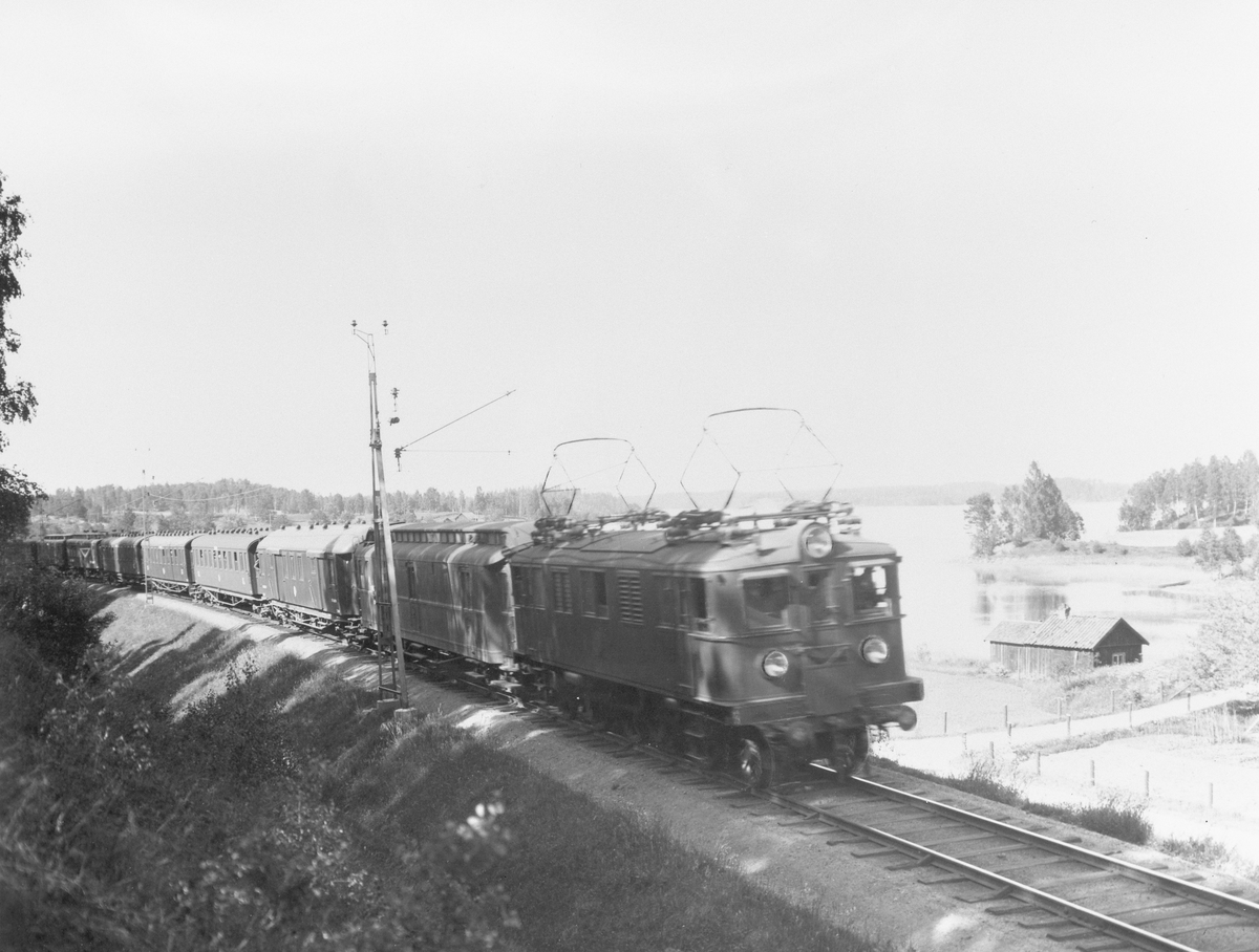 Linjen mellan Sommen och Tranås. Statens Järnvägar, SJ D-lok med snälltåg.