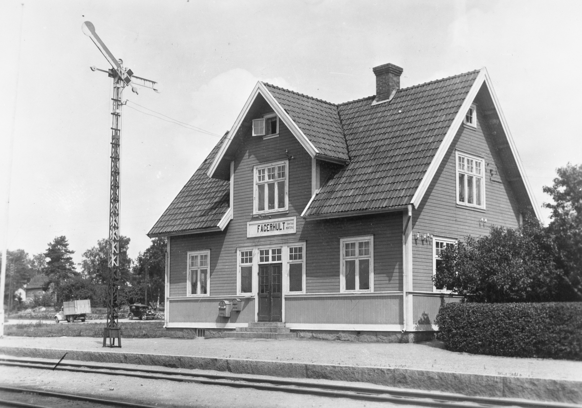 Trafikplats anlagd 1916. En- och enhalvvånings stationshus i trä