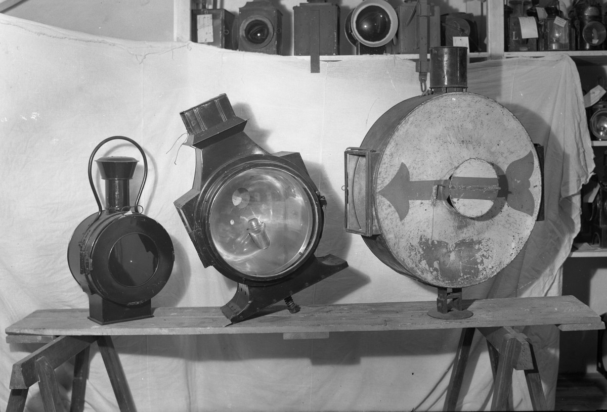 Div lyktor; Järnvägsmuseet. Loksignallykta mod 1860 Ark nr 1315 Loksignallykta s.k. Centrallykta Ark nr 1319 Växellykta större 1870-talet Ark nr 1274