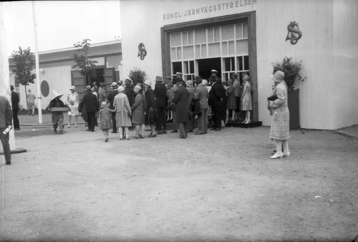 Titel: Besökande utanför ingången till kungliga järnvägsstyrelsen