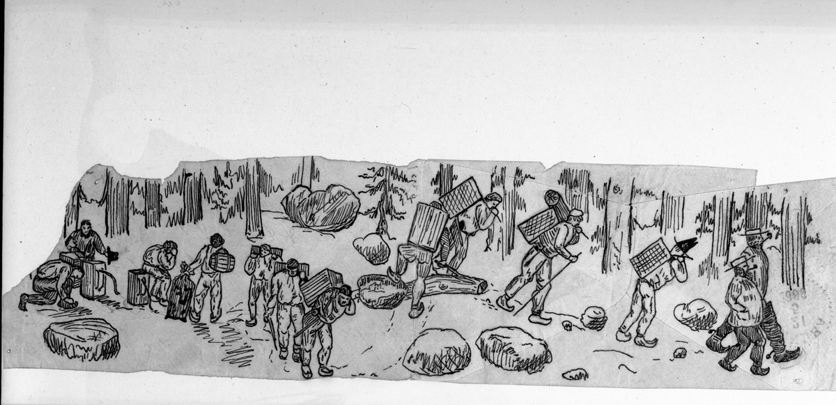 Titel: Undersökning vid Ofotenbanan. Ingenjör H. Wennerström längst till höger