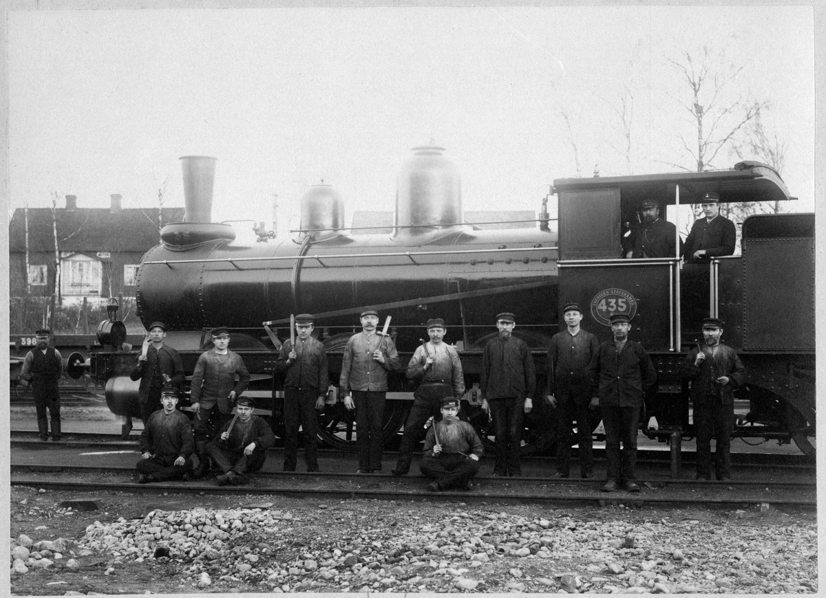 Personal vid lokstallet i Älmhult. Statens Järnvägar, SJ Kd 435.