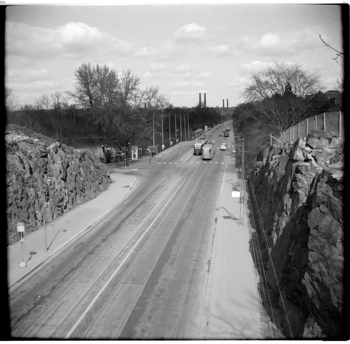 Aktiebolaget Stockholms Spårvägar, SS A25 403 "mustang" linje 10 Värtan - Slussen - Hornstull på Lidingövägen norrut sedd från gångbron vid Stadion.