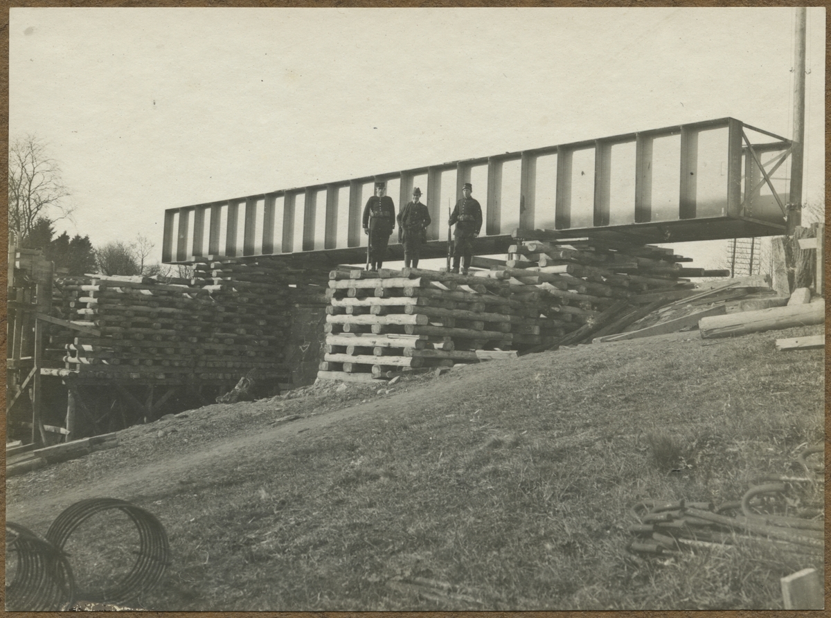 Dubbelspårsbyggnaden mellan Alingsås - Olskroken. Bron över Säveån södra brohalvan. Brospann för provisorisk förbindelse mellan betongbron och östra stranden av saveån