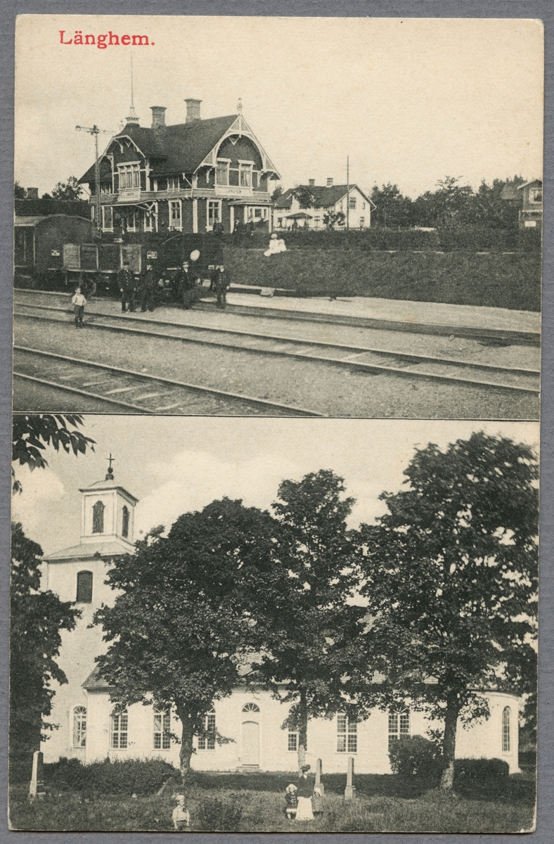 Borås-Alvesta Järnväg, BAJ. Länghems Järnvägsstation. Undre bild Länghems Kyrka.
