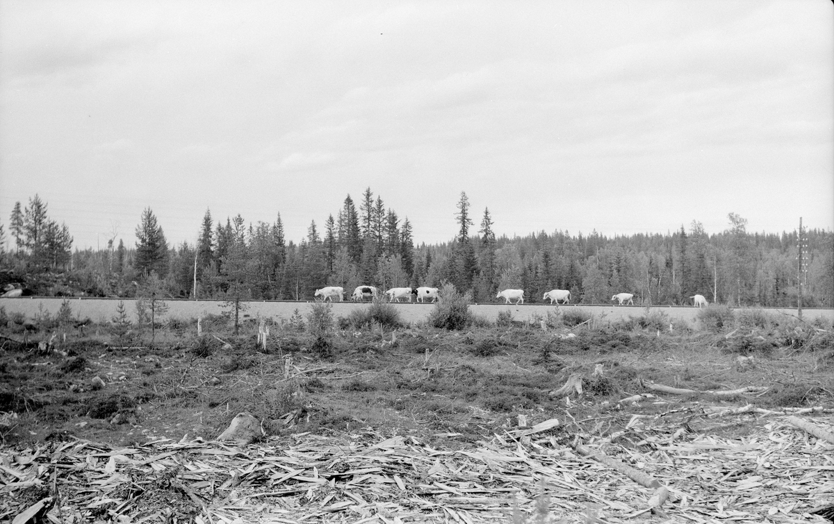 Kor i spåret på linjen mellan Sorsele och Storuman.