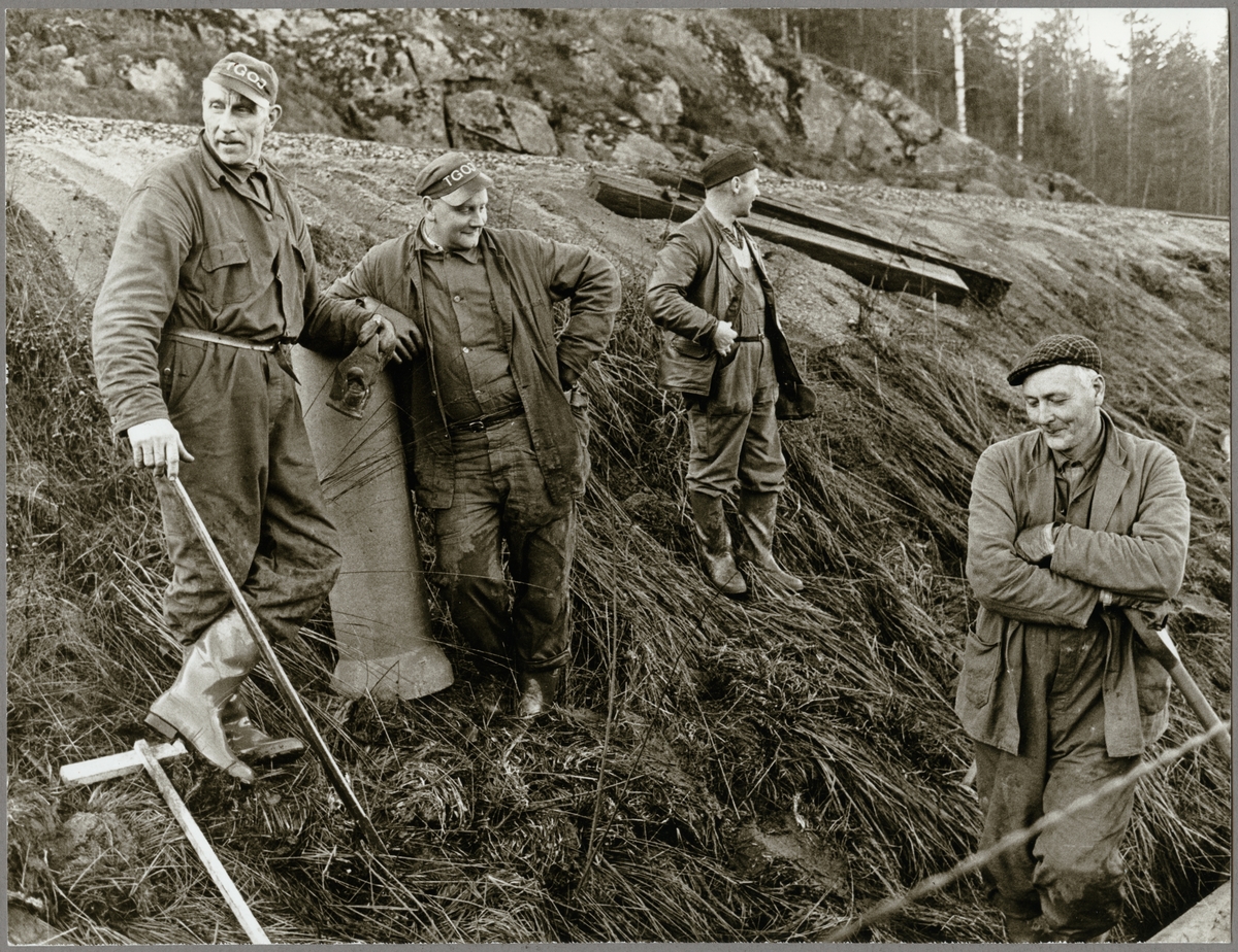 Personal vid underhållsarbete utmed järnvägsspåret på sträckan mellan Harsjön och Bälgviken 1967.