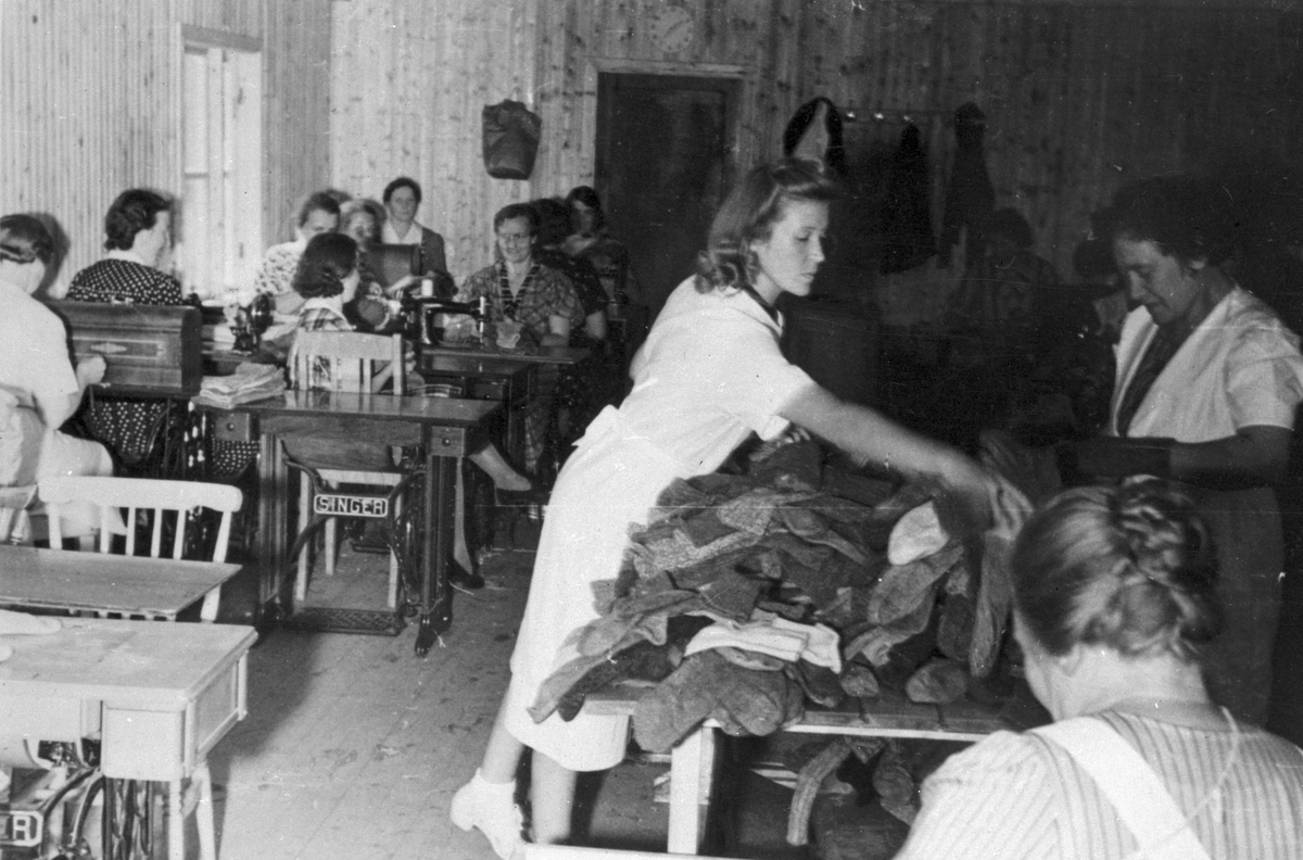 Titel: Arméns mobila tvätteri. Installerat i järnvägsvagnar. Ortens kvinnor lagar och stoppar.