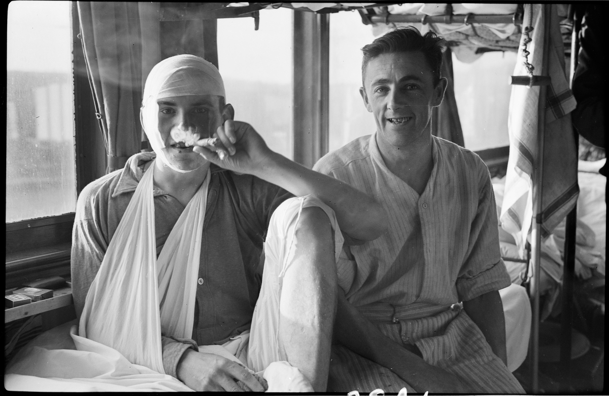 Titel: Tyska sårade i svenskt sjukhuståg.