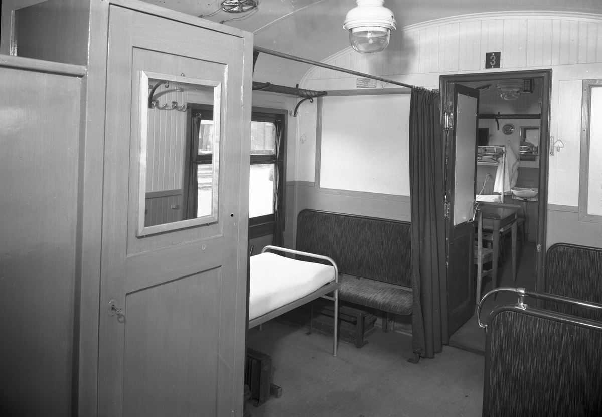 Titel: Arméns sjukhuståg. Expeditions- och sjukvagn.