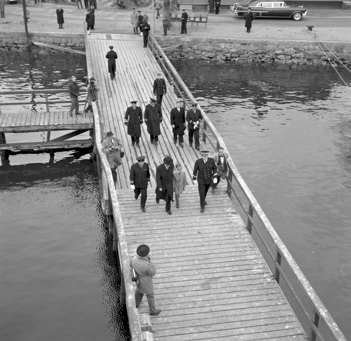 Kungabesöket på tågfärjan "Trelleborg" i Stockholm, Gustav VI Adolf och kronprins Carl Gustaf sedemera Carl XVI Gustaf