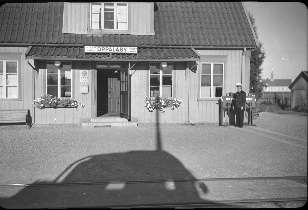 Oppalaby station och postkontor. Trafikplatsen anlagd 1925. Stationshus byggt 1926-11-01. Nedlagd station omkring 1955.