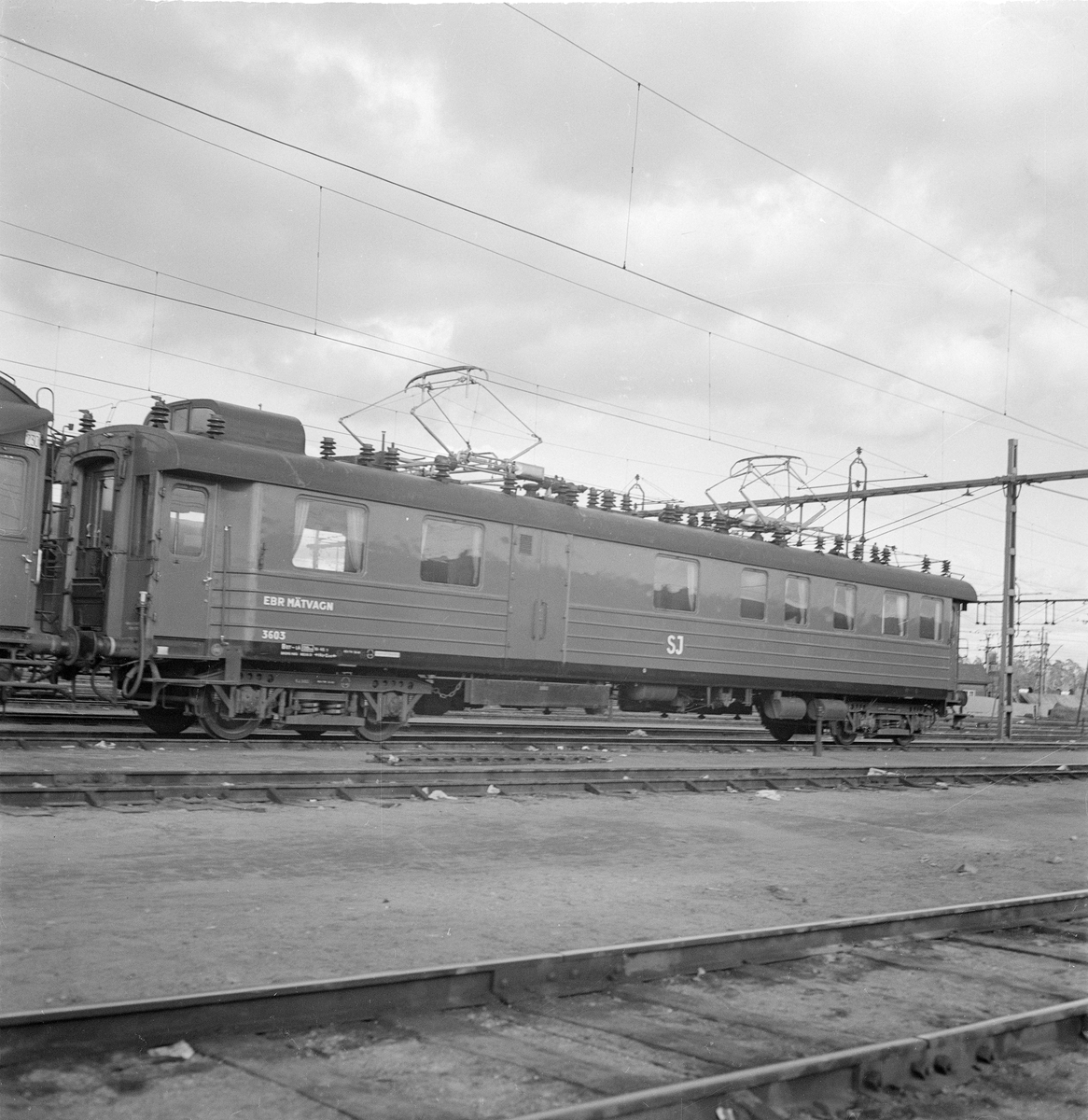 Titel: Mätvagn SJ Ebr 3603. Ebr är förkortning för Elektrotekniska byrån.