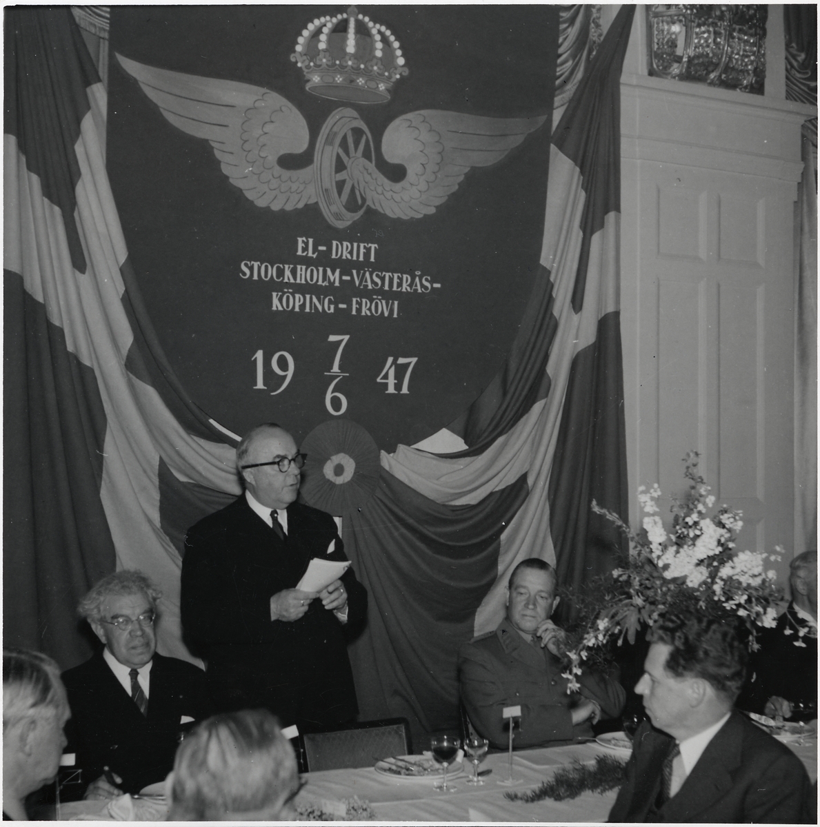Invigningsmiddagen i Örebro med Landshövding Conrad Jonsson, Generaldirektör Gustaf Dahlbeck och Överbefälhavare Helge Jung.