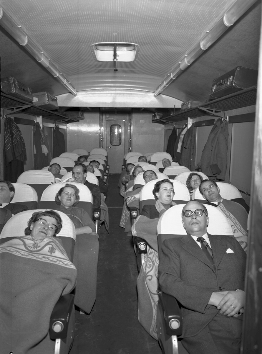 Titel: Statens Järnvägar, SJ YCo8 rälsbuss med flygplansfåtöljer.
