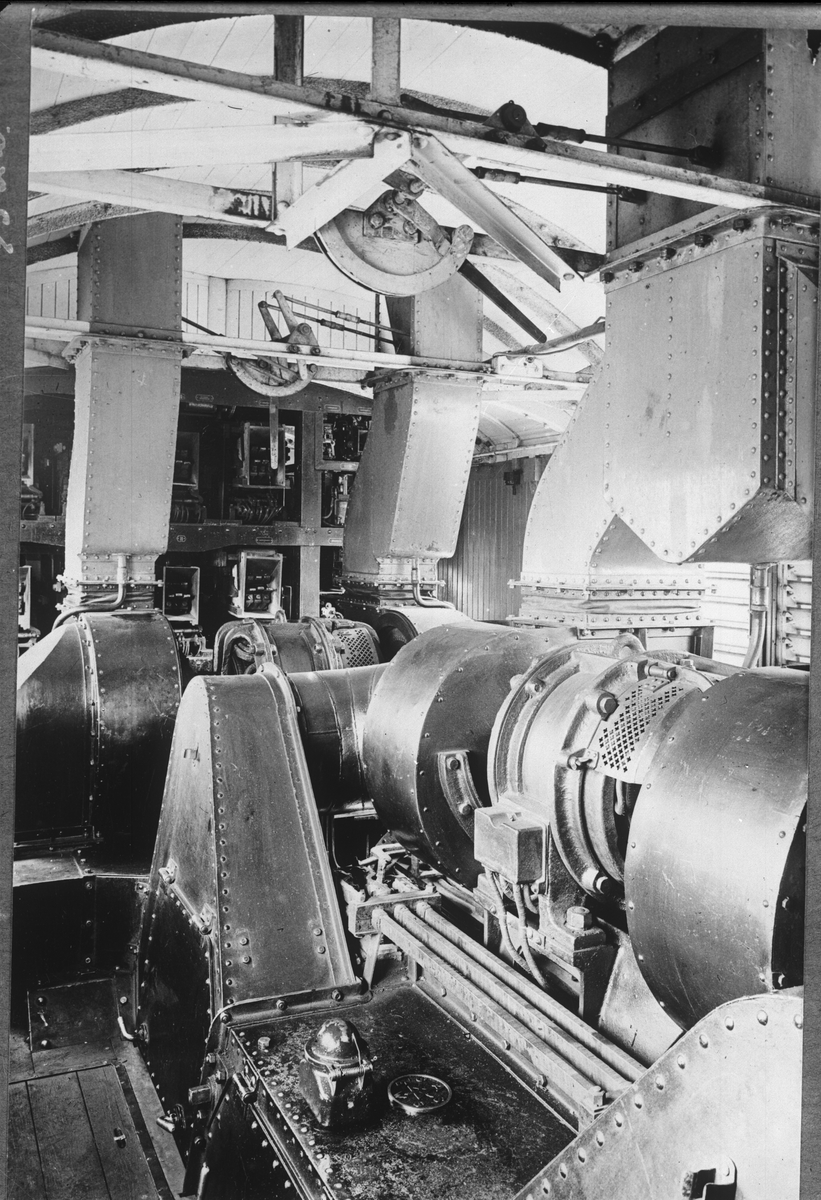 Titel: Maskinrum i maltågslok SJ Oe sett mot förarhytten.