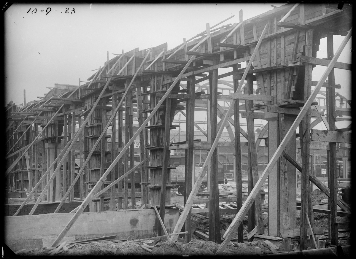 Titel: Banhallarna vid Malmö centralstation under uppbyggnad.