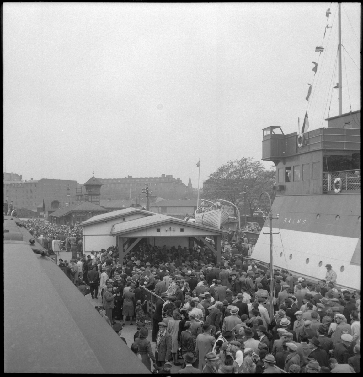Titel: Hemtransport av danska flyktingar. Ankomst till Köpenhamns frihamn.