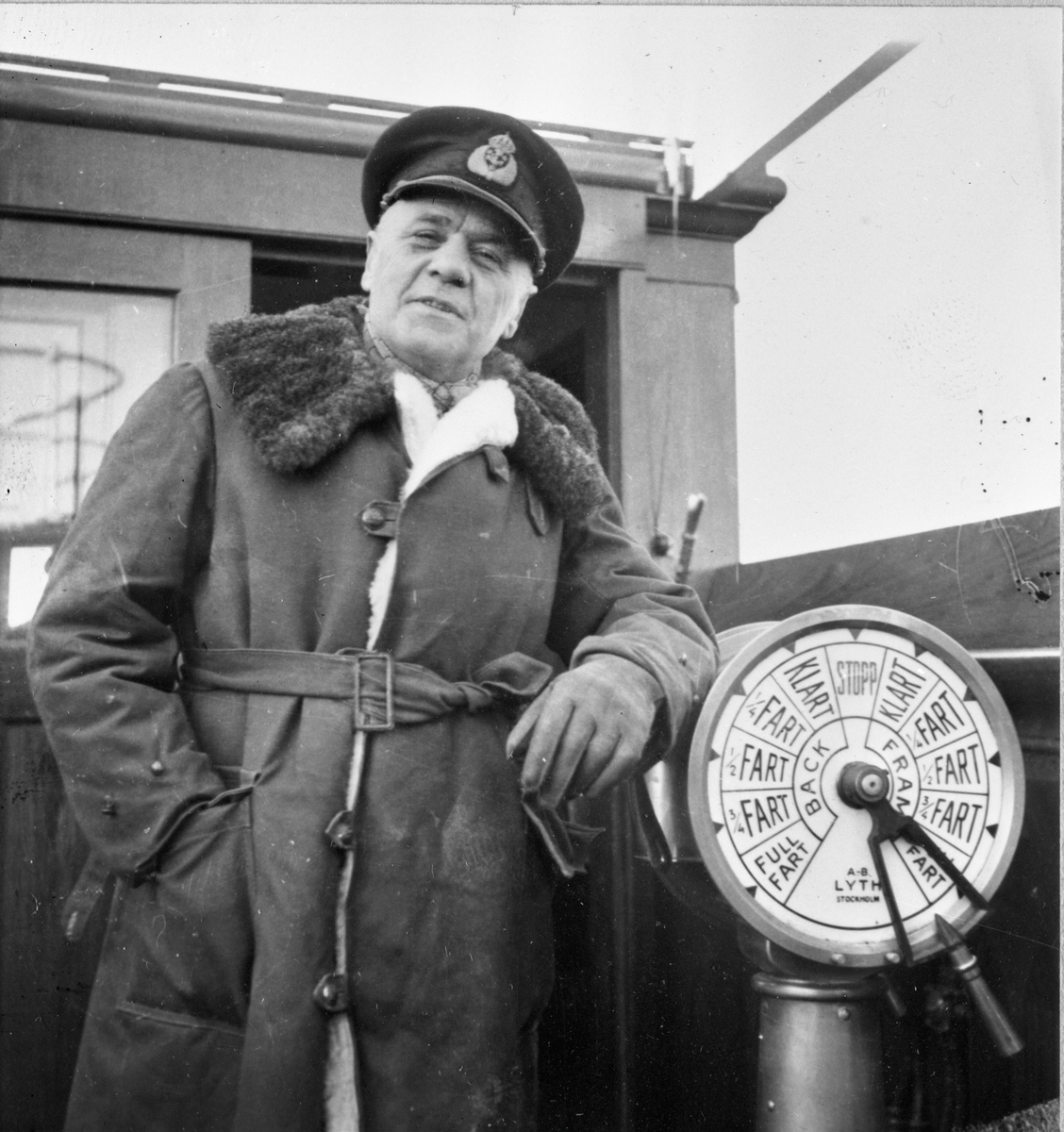 Godsfärjan "Starke", Kapten Eriksson på kommandobryggan .