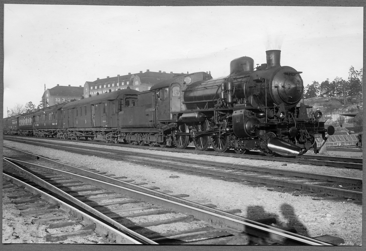 Statens Järnvägar SJ B 1325 med tåg vid Tomteboda.
