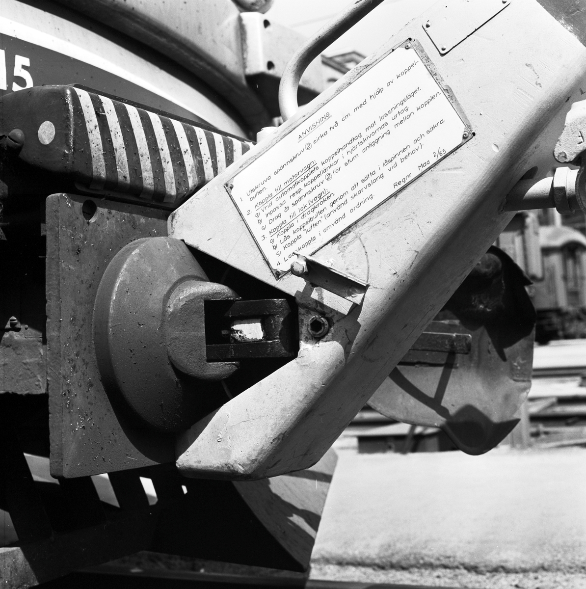 Kopplingsanordning mellan motorvagn och lok med instruktionsskylt