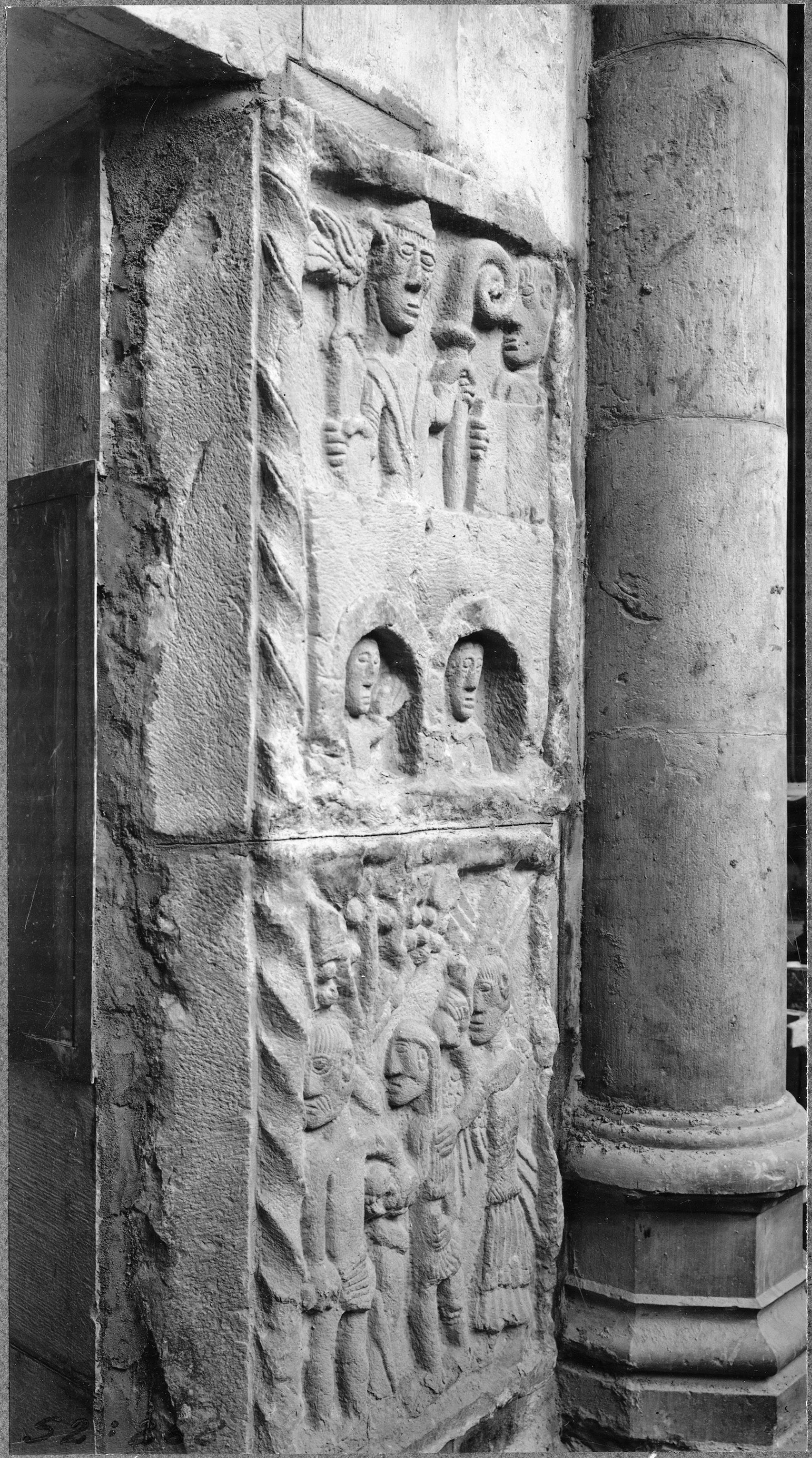 Stenskulptur, romansk, relieftavlor. Nymontering 1949.