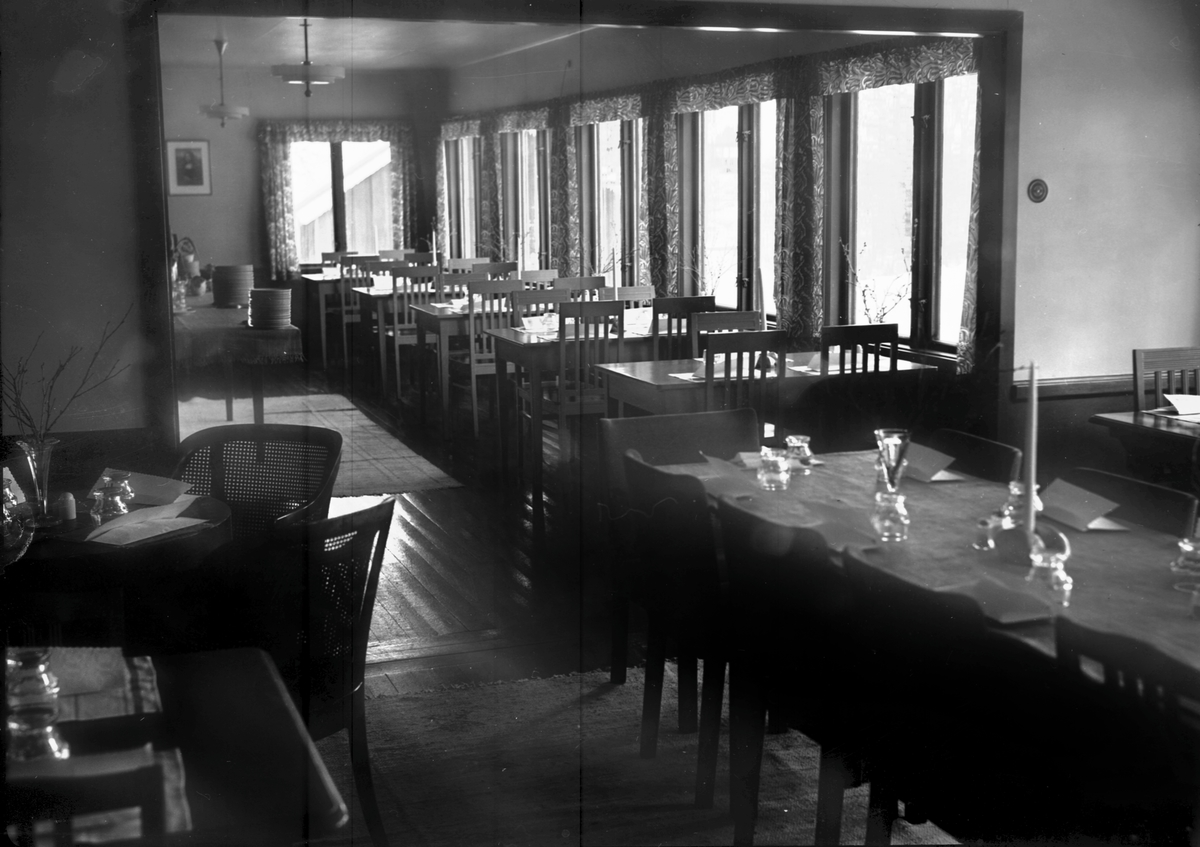 Matsalen på Gammelgården, semesterhem i Björkliden tillhörandes Svenska Järnvägsmännens Semesterhemsförening.