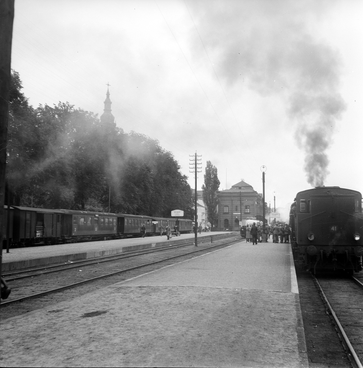 Titel: CÅJ B 41. Militärtrupp ankommer.