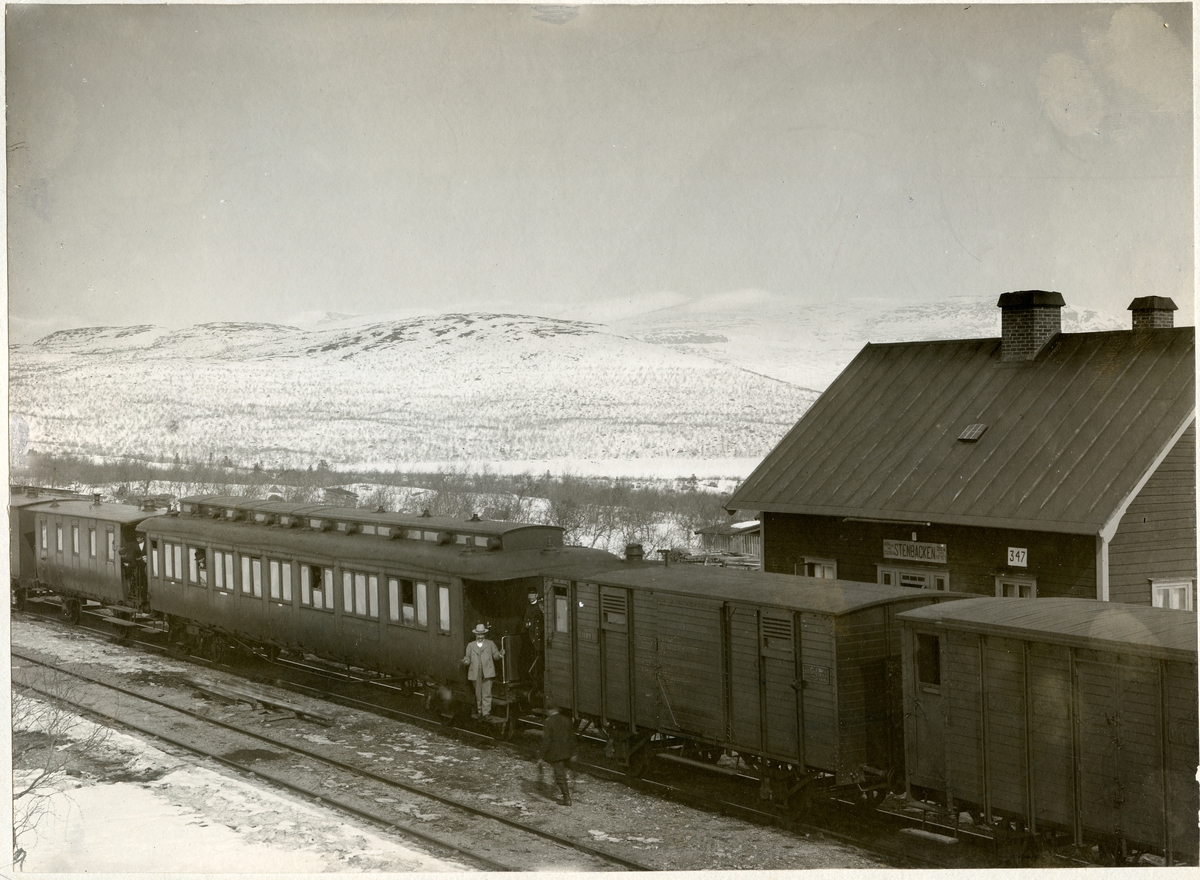 Stenbackens stationhus och banvaktstuga nr. 347. Statens Järnvägar, SJ. Banan öppnad 1903. Banan elektrifierades 1915. Stationshuset byggd 1902 och sålt 1998.. Godsvagn SJ Gs 18971.