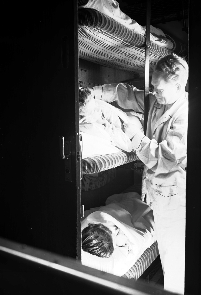 ABo2c, 3:e klass sovvagn. Mannen nattar barnen.
